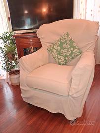 Vendo poltrona bergere marca Poltrona e sofà. Tessuto sfoderabile e lavabile. Piccola macchia su seduta. In regalo anche copridivano colore panna. Ritiro e trasporto a cura dell'acquirente.