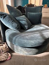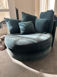 Poltrona rotonda color ottanio con 4 cuscini, in velluto.