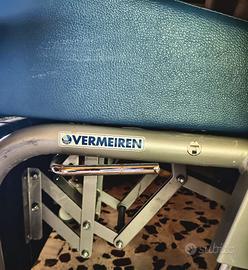 Vendo per ragioni di spazio bella e comodissima poltrona Vermeiren come nuova, usata pochissimo, utilissima per anziani o disabili, ribaltabile, con vassoio in legno incluso. Con rotelle e manico posteriore per spostarla agevolmente, e freni. 180 euro non trattabii.