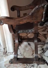 Vendo bellissima poltrona Savonarola d'epoca in stile neo-Rinascimento italiano, in legno ebanizzato di fattura artigianale risalente ai primi anni del '900.