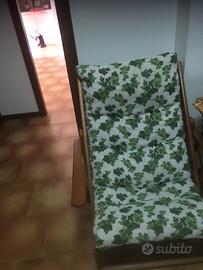 Poltrona Sdraio relax , comoda in legno ,cuscino imbottito colore fondo bianco con fantasia foglie verdi. Struttura legno con tre posizioni. Condizioni ottime