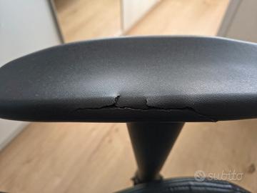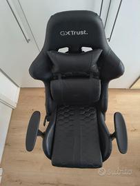 Vendo poltrona/sedia da gaming GX Trust a 5 zampe con ruote. La poltrona è in buone condizioni se non per un punto usurato sulla seduta ed un taglio sul bracciolo sinistro come da foto allegate. Per il resto la poltrona è reclinabile con blocco opzionale, l'altezza della seduta è regolabile da pistone, sono reclinabili anche i braccioli ed orientabili. Comprensiva anche di cuscino testa e cuscino posturale schiena entrambi rimuovibili.