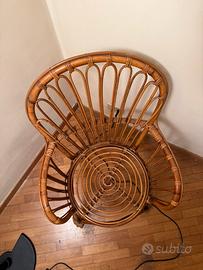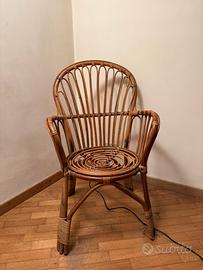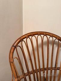 Bella poltrona / sedia con braccioli in paglia di vimini e bamboo vintage da esterno o interno. Design tipo Franco Albini. Ottime condizioni - ritiro a mano su Genova. Disponibile anche tavolibo abbinato - prezzo per entrambi scontato.