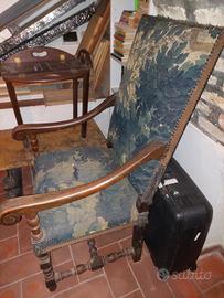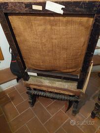 Splendido seggiolone/ poltrona antica in legno di noce, autentico mobile d’epoca del XVII secolo (600), elegante e ricco di storia.