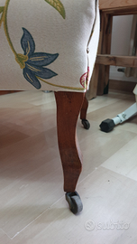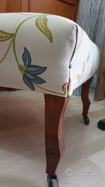 Antica poltrona in stile "crapaud" restaurata con rivestimento in tessuto e dall'imbottitura confortevole. Poltrona retro chic senza braccioli, con seduta comoda e schienale imbottito. Con gambe davanti in legno e ruote. Inglese fine 1800. Ottimo stato.