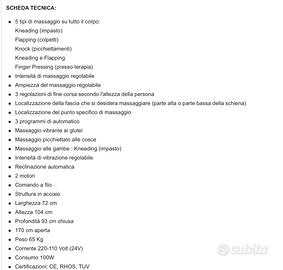 Poltrona shiatsu Usata con 2 motori, perfettamente funzionante con 2 imbottiture di seduta, la poltrona ha qualche segno di usura sul rivestimento e il telecomando , ma e totalmente funzionante. Nuova costa €2578,00