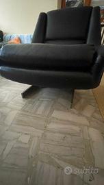 Poltrona simil pelle nera, anni '60 e poggiapiedi