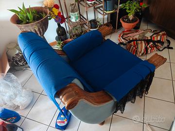 Una poltrona stile vecchia e classica di colore azzuro, molto comodo, tenuto dal vecchio proprietario, vendo per cambio arredamento, prezzo trattabile