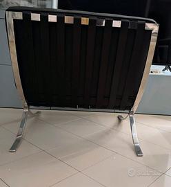Vendo bellissima riproduzione della sedia Barcelona per inutilizzo. La sedia è di qualità superiore, con struttura interamente cromata e cuscini in vera pelle.