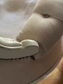Poltrona con braccioli stile Shabby Chic sedia bianco anticato e bottoni. Imbottitura capitonné. Cuscino sfoderabile. Misura cm.70x60x1,15