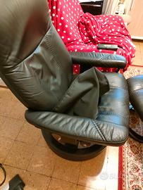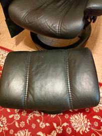 Poltrona STRESSLESS EKORNES modello CONSUL-M con POGGIAPIEDI, Rivestimento in PELLE NERA, SENZA graffi, tagli o crepe, base dotata di 2 anelli aggiuntivi, che -volendo- si possono togliere.