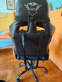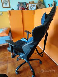 vendo poltrona in tessuto/simil pelle nera e blu. Regolabile in altezza, schienale,braccioli. Girevole.Usata ma ben tenuta