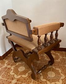 Poltrona retro’ in legno e tessuto scamosciato