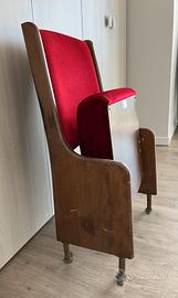 Vendo poltroncina di teatro. É stata montata per anni, fino al restauro, nelle gallerie del Teatro Donizetti, Bergamo. La poltroncina aveva una collocazione laterale e per questo é stata poco utilizzata e si presenta con pochissimi segni di usura, solo nella parte di legno, il velluto é come nuovo. Pezzo di arredamento unico nel suo genere. Non spedisco, é troppo pesante, solo consegna a mano.