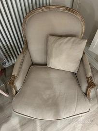 Poltrona tessuto beige con cuscino