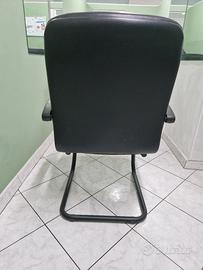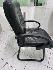 Poltrona in pelle nera con base in ferro e braccioli in plastica. Misure H90 L65
