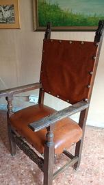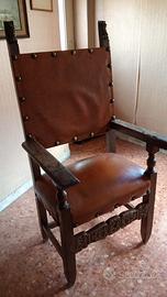 Poltrona trono pelle e legno antica molto bella adatta per ufficio di livello elegante no spedizione 100€