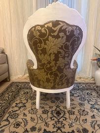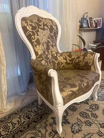 Vendo poltrona trono reataurata. Tappezzeria rifatta, imbottitura rifatta. Oggetto vintage con comodita moderna. Prezzo trattabile. Ritiro a mano. No spedizione per la dimensione deche costerebbe piu dell’oggetto.