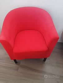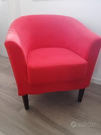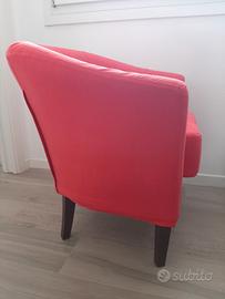 Vendo poltrona nuova, molto comoda, scocca Rossetti e rivestimento cotone manopesca color corallo con cuscino. Vendo per mancanza di spazio.
