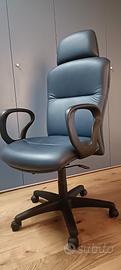 Poltrona ufficio ergonomica direzionale in pelle naturale blu.