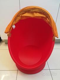 Poltrona uovo Ikea. Colore rosso/arancione. IKEA PS LÖMSK Poltrona girevole. Dimensioni: Larghezza: 59 cm -Profondità: 62 cm - Altezza: 75 cm - Altezza totale: 82 cm Telo leggermente scucito.