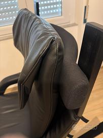 Pari al nuovo, tessuto Revive 194 Black, imbottita con cuscino con spugna 5 cm che la rende ancora piu' comoda e facilmente pulibile (il tessuto sottostante è impeccabile), le coperture in finta pelle nera sono anche sui braccioli e sulle zone piedi, posizionate al fine di non farla rovinare dal sudore o polvere. NB: la versione in pelle costa più del doppio.