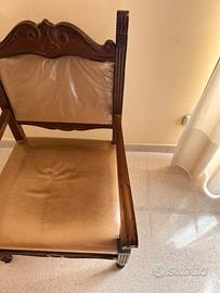Poltrona in velluto beige con struttura in legno vero. Poltrona unica vintage
