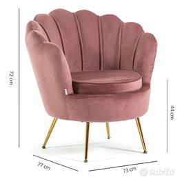 Vendo per inutilizzo poltrona a forma di conchiglia in velluto colore rosa antico , in perfette condizioni, firmata Enrico Coveri