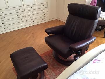 Poltrona marca Stressless made in Norvegia colore marrone scuro in vera pelle