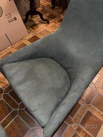 Poltrona verse scamosciata con pouf per appoggiare i piedi. Come nuova