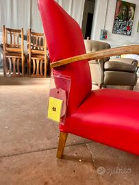 Poltrona anni 50 Completamete restaurata in vera pelle primo fiore. Misure H 77 P 75 L 65 cm