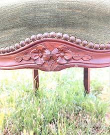 Poltrona vintage, stile Luigi XV, con struttura in legno e seduta in velluto verde. Solida, comoda e perfetta per dare un tocco di classe a qualsiasi ambiente. Ideale per chi ama l'arredo retrò. 80 euro