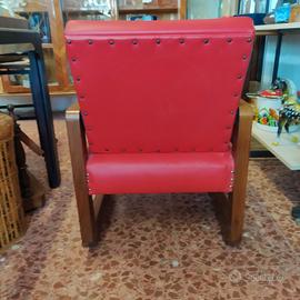 Materiali: Robusta struttura in legno con braccioli squadrati e rivestimento in skai (similpelle) rosso acceso.