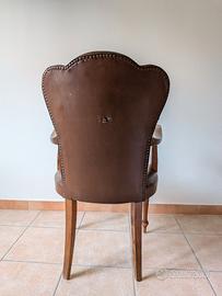 Poltrona in pelle e legno, acquistata negli anni '60 presso la Fiera del mobile in Cascina in Toscana. Dalle foto sono visibili alcuni interventi necessari per il restauro. Per ulteriori foto e dettagli, chiedete pure.