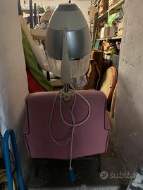 Una chicca vintage, poltrona da parrucchiere originale del 1961 in perfette condizioni, tessuto interamente integro color rosa antico,perfettamente funzionante, per idea vetrina o parte di arredo negozio.