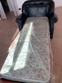 Poltrona frau vintage in pelle con letto estraibile compreso di materasso nuovo . Misura poltrona larg120. X 100 alt 95