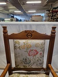 vendo elegante poltrona vintage con una struttura in legno e seduta imbottita. Design classico e raffinato. Tessuto floreale multicolore. Braccioli curvi per un maggiore comfort.