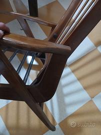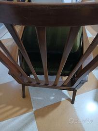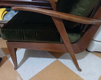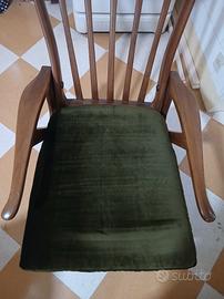 Design e gusto scandinavo. Legno massello in ottime condizioni senza tarli sempre tenuta in casa .Tessuto verde in velluto. Schienale reclinabile per una comoda seduta. Molle originali e perfette!