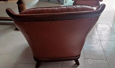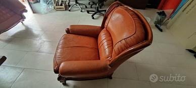 Poltrona da soggiorno Camera ricezione singola sofisticata e finemente intarsiata, in vera pelle di colore bordeaux le poltrone sono due ( il prezzo è riferito alla singola poltrona) sono da trattare solo per alcune parti della seduta in pelle ( anche se la pelle screpolata è un elemento d'arredo raffinato); lo schienale e la struttura sono come nuovi.