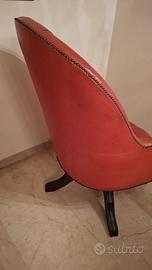 🪑 Elegante poltrona vintage in vera pelle rossa, lavorazione capitonné artigianale e chiodatura perimetrale in ottone anticato.