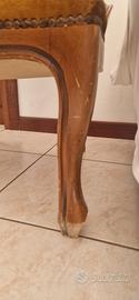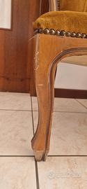 Poltrona vintage in legno massello con dettagli decorativi in borchie. Struttura solida e stabile, molto comoda. Perfetta per arredamento elegante, shabby chic o restyling creativo. Presenta normali segni del tempo sul tessuto e sul legno, ma in ottime condizioni strutturali. Ideale anche per chi ama il fai da te e il recupero mobili. prezzo trattabile