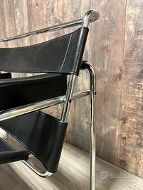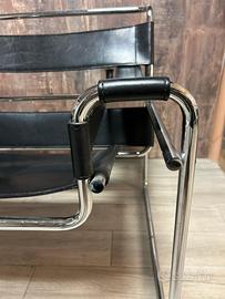 Vendo poltrona Wassilly senza marchio visibile. La poltrona puo essere condiserata una riproduzione originale visibile chiaramente dalla fattura ovvero no tappi ma tutto interamente saldato a regola d’arte. Seduta, schienale e poggia mani in vero cuoio. Sedia super resistente utilizzata esclusivamente in casa (prima come arredo design) e poi saltuariamente in studio fotografico. No perditempo