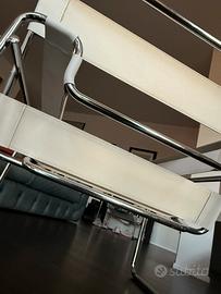 Questa è una poltrona tipo Wassily di Knoll, disegnata da Marcel Breuer nel 1925 che esiste in diverse varianti tra cui quella come quella qui proposta: