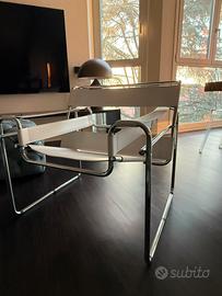La struttura d'acciaio tubolare cromato fu ispirata al telaio di una bicicletta e il nome Wassily in onore del pittore Wassily Kandinsky, per il quale Breuer la realizzò.