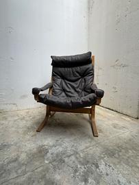 Vendo poltrona Siesta di Ingmar Relling per Westnofa, design scandinavo anni '60, in legno e rivestimento in pelle.