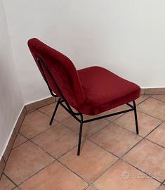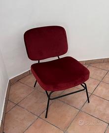 Poltroncina in velluto Westwing colore bordeaux, acquistata ma mai utılızzata. Pari al nuovo. Pagata 179€. Seduta 50x55 cm. Profondità 75 cm. Altezza seduta 45 cm.