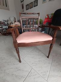 Poltroncina a pozzetto anni 50 Imbottita in legno di quercia, per camera da letto . Per collezionisti e amanti dell'antiquariato.