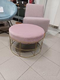 Poltrona Design e puoff rosa in abbinata o singolarmente.