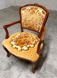 Vendiamo comoda poltroncina barocca. Bella da posizionare in camera da letto o anche in salotto. Rivestimento ottimo ben conservato.