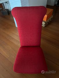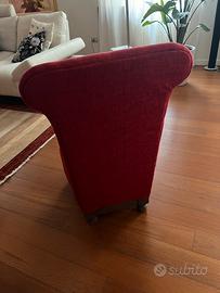 Romantica poltroncina bassa rifoderata a nuovo in un rosso caldo ottima per serate vicino al fuoco